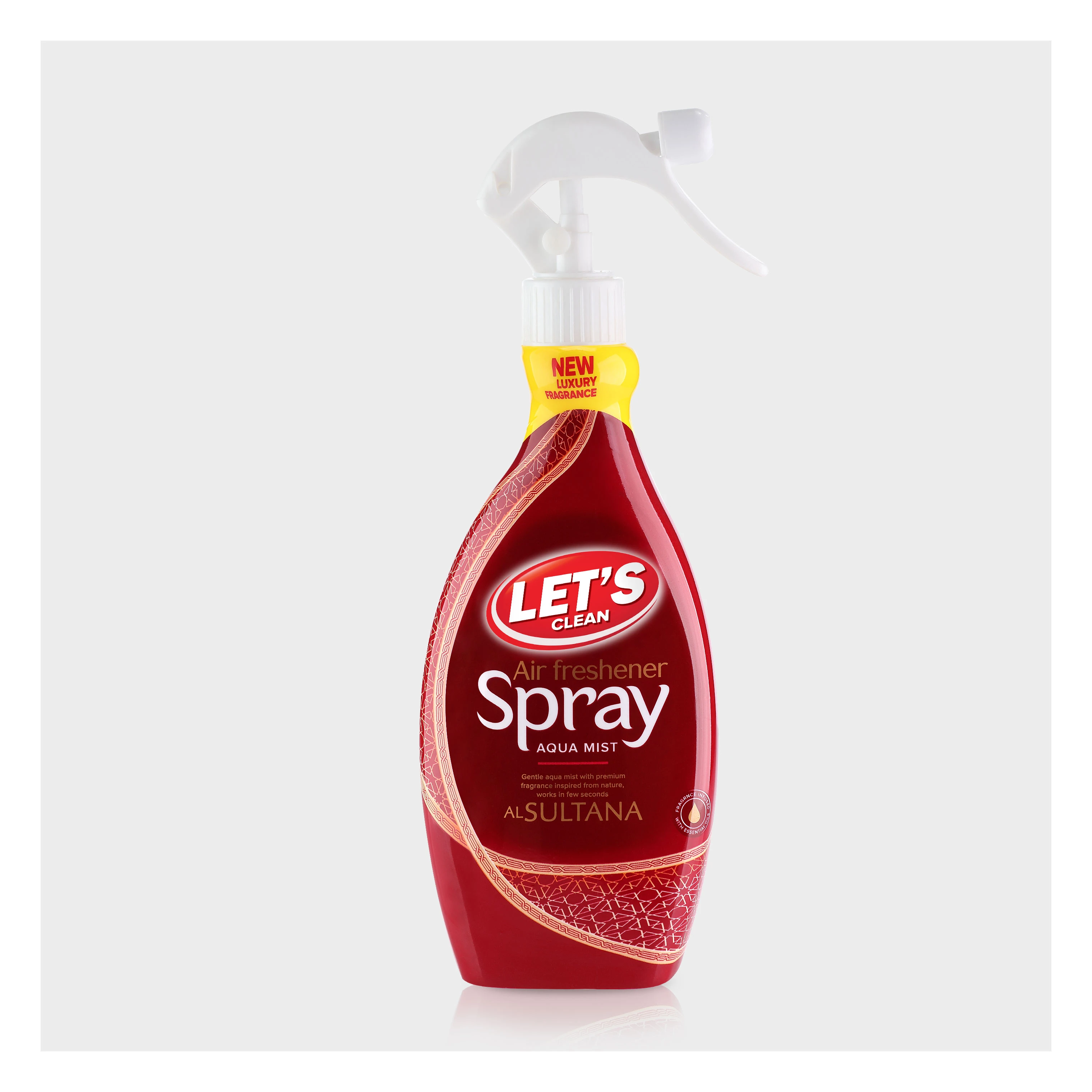 Eliminates unpleasant odors instantly with a long-lasting effect. Premium fragrance freshens your home and creates a pleasant atmosphere within seconds. Gentle aqua mist, gas-free, available in an economic size. Choose from 10 premium nature-inspired fragrances: Musk & Amber, Lavender, Tropical Fruit, Cherry Blossom, Oriental Oud, Majesty, Flamingo Story, Al Majlis Vibes ,sharm , and Al Sultana.